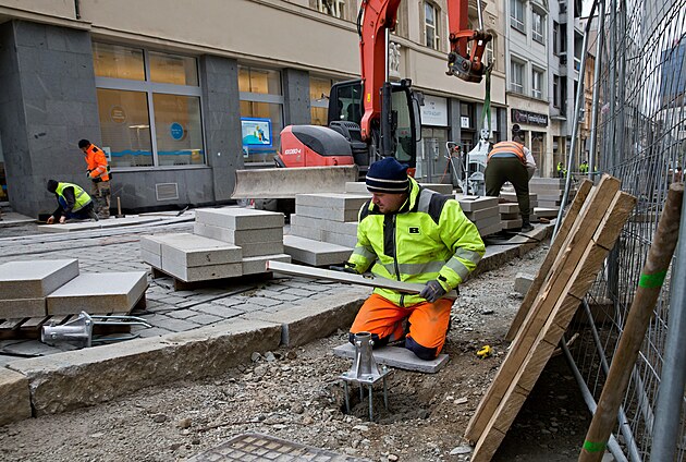 Stavební firmy dokončují rekonstrukci Zbrojnické ulice v Plzni, tramvaje se tam vrátily v pondělí. (6. listopadu 2024)