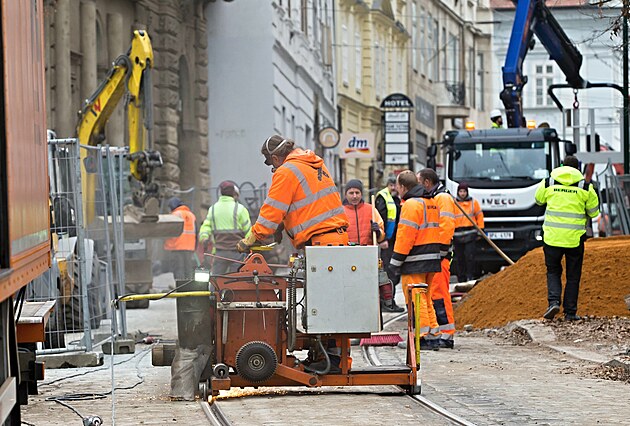 Stavební firmy dokončují rekonstrukci Zbrojnické ulice v Plzni, tramvaje se tam vrátily v pondělí. (6. listopadu 2024)