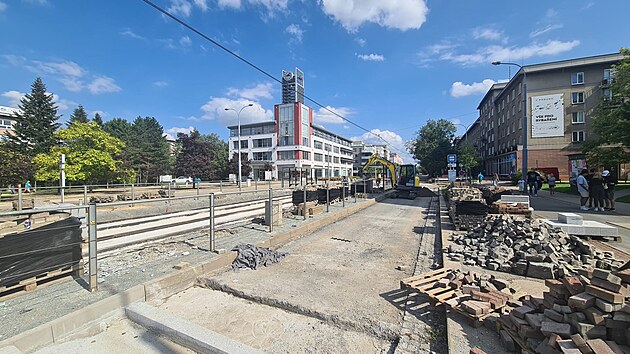 Do konce prázdnin nebude hotová oprava kolejiště v Koterovské ulici v Plzni na Slovanech. (29. srpna 2022)