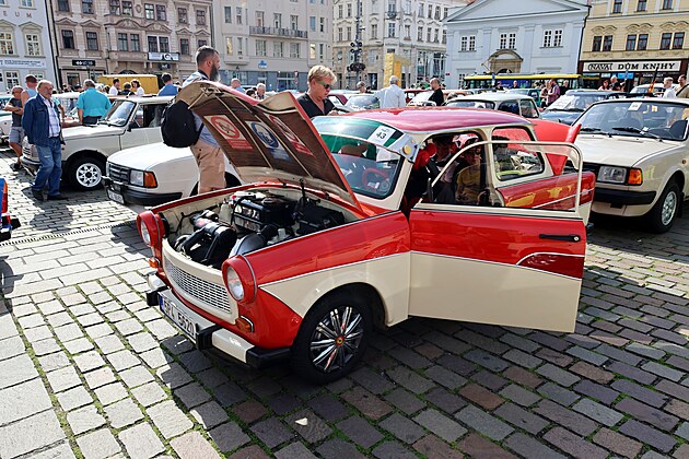 Retrojízda aneb V čem jsme jezdili za socialismu vyrazila z plzeňského náměstí Republiky, brázdila silnice v okolí krajské metropole. (9. srpna 2025)