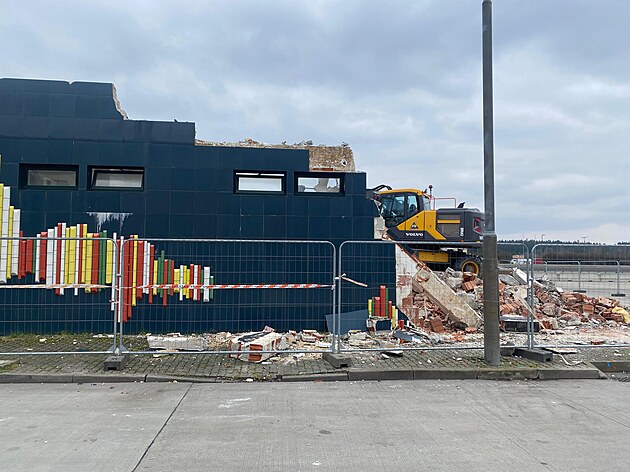 Na rozvadovské odpočívce na dálnici D5 začala demolice jedné z bývalých celních budov. Postupná demolice vybraných budov poskytne potřebný prostor pro plánované rozšíření odpočívky. (7. března 2024)