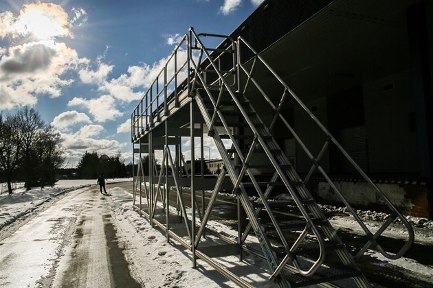 Lávka, ze které si řidiči kamionů mohou očistit sníh a led ze střechy svého vozidla, je k dispozici poblíž hraničního přechodu v Rozvadově. Je jediná svého druhu v ČR. (13. 2. 2021)