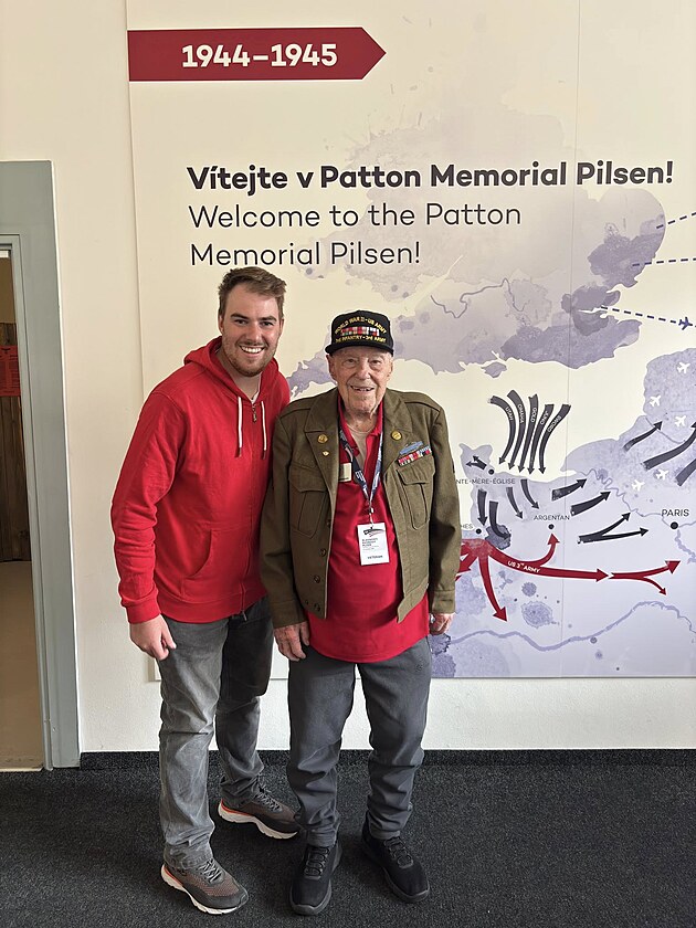 Válečný veterán Harry Humason v Pattonově muzeu v Plzni.