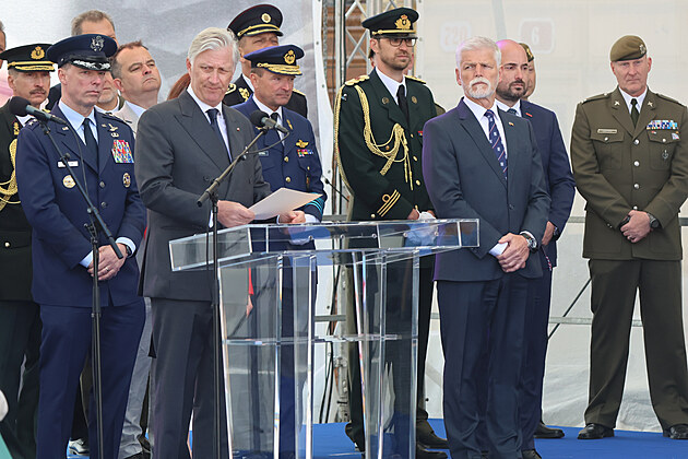 Pietní akt u památníku Díky, Ameriko! za účasti prezidenta Petra Pavla a krále Belgičanů Filipa. (6. května 2025)
