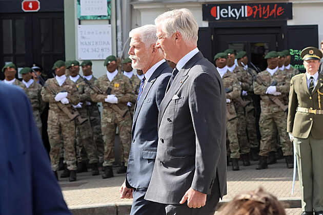 Pietní akt u památníku Díky, Ameriko! za účasti prezidenta Petra Pavla a krále Belgičanů Filipa. (6. května 2025)