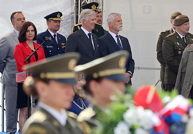 Pietní akt u památníku Díky, Ameriko! za účasti prezidenta Petra Pavla a krále Belgičanů Filipa. (6. května 2025)