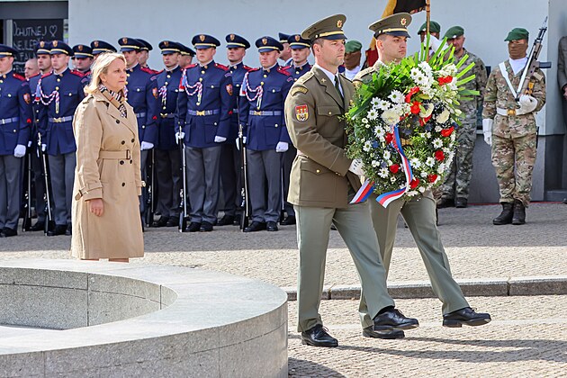 Pietní akt u památníku Díky, Ameriko! za účasti prezidenta Petra Pavla a krále Belgičanů Filipa. (6. května 2025)