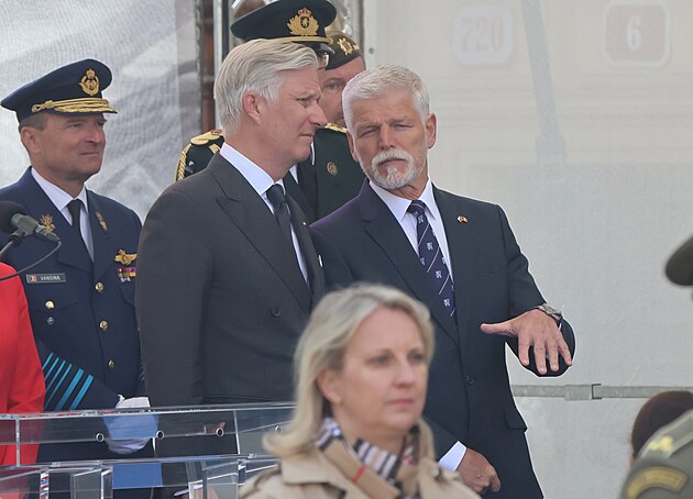 Pietní akt u památníku Díky, Ameriko! za účasti prezidenta Petra Pavla a krále Belgičanů Filipa. (6. května 2025)