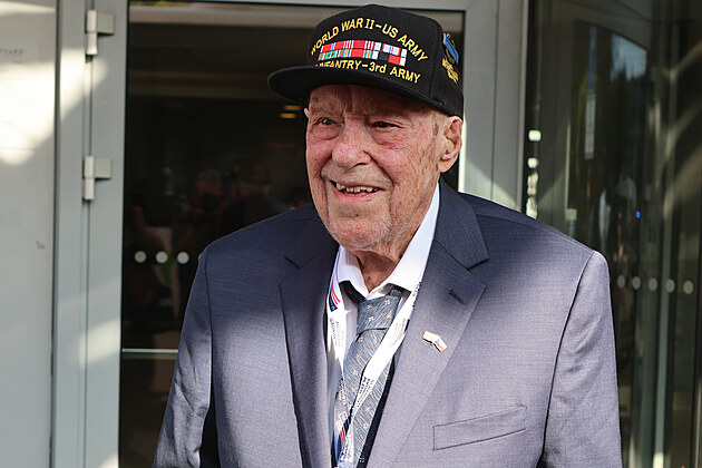 Americký veterán Harry Humason se do Evropy vrátil po 80 letech. V Plzni navštívil Slavnosti svobody. (1. května 2025)