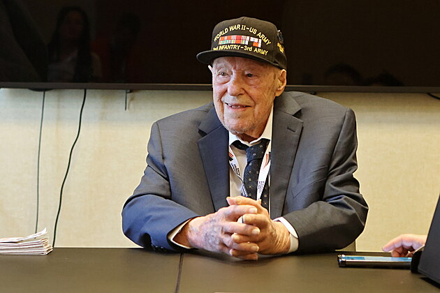 Americký veterán Harry Humason se do Evropy vrátil po 80 letech. V Plzni navštívil Slavnosti svobody. (1. května 2025)