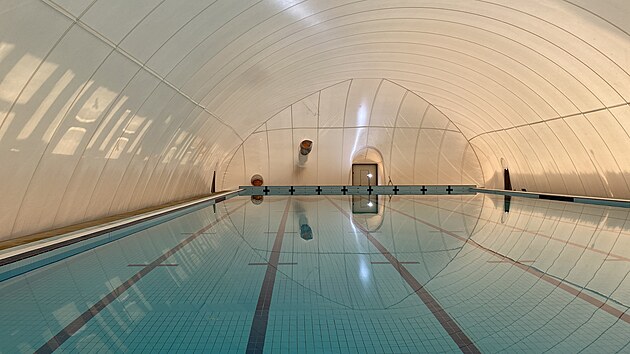 Venkovní bazén v Plzni na Slovanech zakryla nafukovací hala. Plavcům začne sloužit v polovině prosince. (29. listopadu 2024)