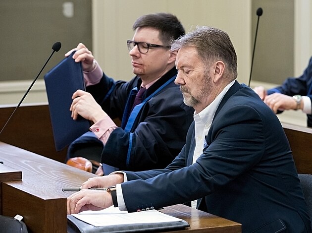 Výpověď obžalovaného Michala Káníka si k plzeňskému okresnímu soudu přišel vyslechnout i hlavní obžalovaný v kauze fotbalové korupce Roman Berbr (vpravo).