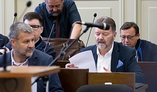 Výpověď obžalovaného Michala Káníka si k plzeňskému okresnímu soudu přišel vyslechnout i hlavní obžalovaný v kauze fotbalové korupce Roman Berbr (vpravo).