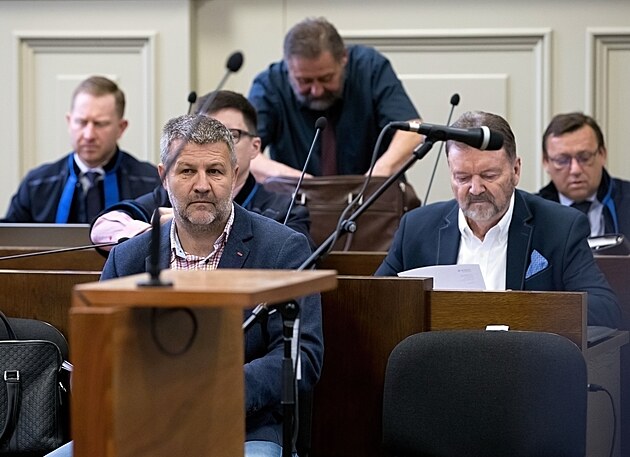 Výpověď obžalovaného Michala Káníka (vlevo) si k plzeňskému okresnímu soudu přišel vyslechnout i hlavní obžalovaný v kauze fotbalové korupce Roman Berbr (vpravo).