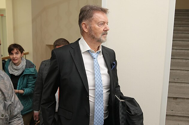 Bývalý předseda Fotbalové asociace ČR Roman Berbr přichází k hlavnímu líčení u Okresního soudu Plzeň-město. (17. dubna 2023)