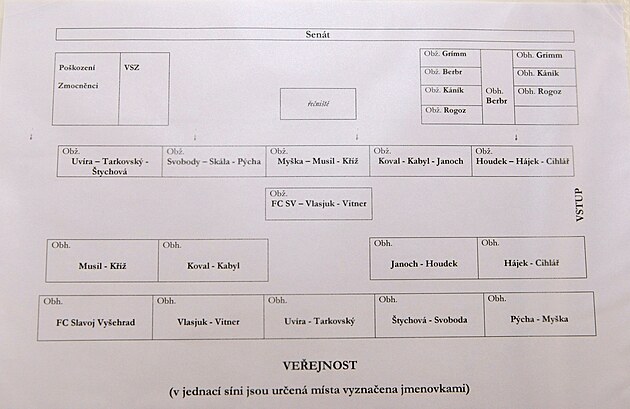 U Okresního soudu Plzeň-město začal proces s Romanem Berbrem, několika rozhodčími a dalšími lidmi kvůli korupci ve fotbalovém prostředí. Kvůli velkému počtu obžalovaných soud předem určil, kde kdo bude sedět. (17. dubna 2023)
