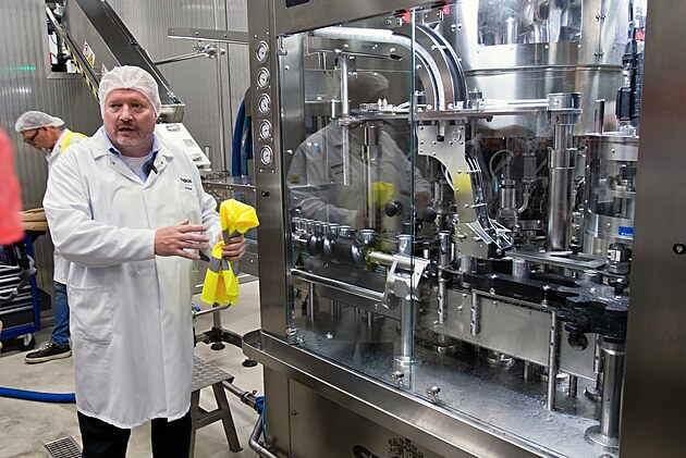 Tradiční výrobce fernetu Stock Plzeň - Božkov posiluje výrobu míchaných nápojů v plechovkách a malých soudcích, tzv. ready to drink (RTD), které jsou stále žádanější u mladší generace konzumentů. Na snímku výrobní ředitel STOCK Plzeň Božkov Josef Bergl u nové linky na plnění míchaných nápojů. (29. července 2025)