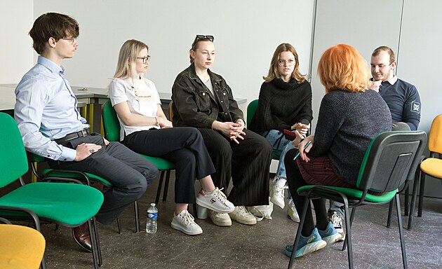 Studenti Západočeské univerzity v Plzni diskutovali s redaktorkou MF DNES Jitkou Kubíkovou Šrámkovou o tom, kde hledají zdroje informací, jaký mají zájem o politiku, nebo o problémech s byty. (1. dubna 2025)