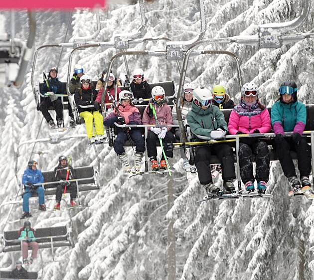 Se sněžením a teplotami pod nulou se na konci ledna vrátila na sjezdovky zimní sezona. V areálu na Špičáku u Železné Rudy se postupně vracejí do kondice všechny sjezdovky. (31. 1. 2023)