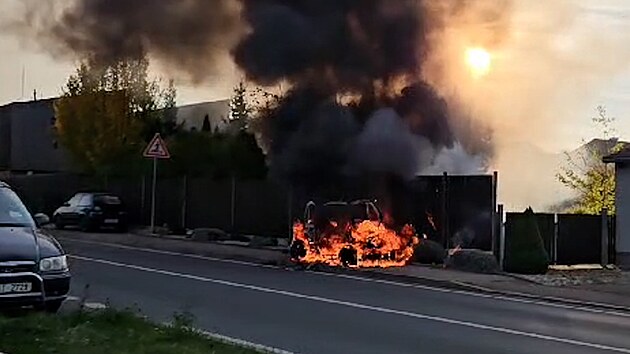 Ve Zruči-Senci u Plzně kompletně shořel malý elektromobil