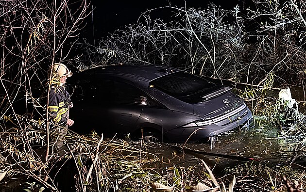 Řidič nevybral zatáčku a sjel s elektromobilem do rybníku. Nehoda se stala na Tachovsku.