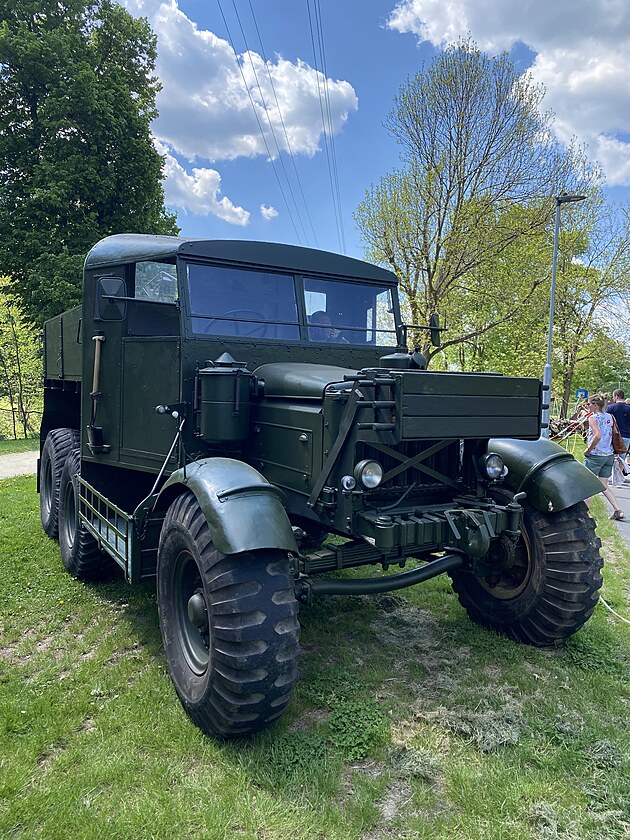 Tahač Scammel Pioneer byl k vidění na Slavnostech svobody v Plzni. Majitel ho přivezl z Velké Británie a pět let ho dával dohromady. (2. května 2025)