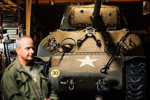 Tak M4 Sherman prošel kompletní renovací. Bude hlavním exponátem v nově budovaném muzeu osvobození v Plzni na Klatovské třídě. Na snímku Ivan Rollinger, který vede Muzeum generála Pattona.