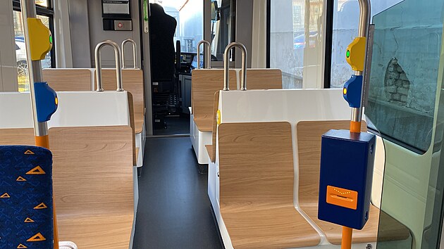 Do nejdelších tramvají pro 368 cestujících si německý odběratel objednal dva typy sedadel. Na vyvýšených místech za oběma kabinami řidičů jsou dřevěná, ve většině pak polstrovaná. (18. března 2025)