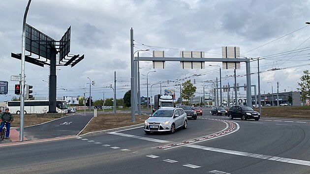 Dopravní situace na nově otevřeném kruhovém objezdu na Borských polích se neustále vyvíjí. Specialisté upravují semafory. (1. října 2025)