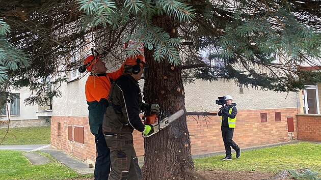 Vánoční strom pro Plzeň. Tentokrát rostl přímo v Plzni, na Doubravce. (11. listopadu 2024)