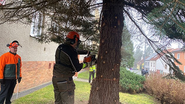Vánoční strom pro Plzeň. Tentokrát rostl přímo v Plzni, na Doubravce. (11. listopadu 2024)