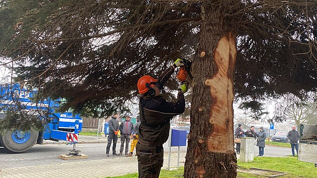 Vánoční strom pro Plzeň. Tentokrát rostl přímo v Plzni, na Doubravce. (11. listopadu 2024)