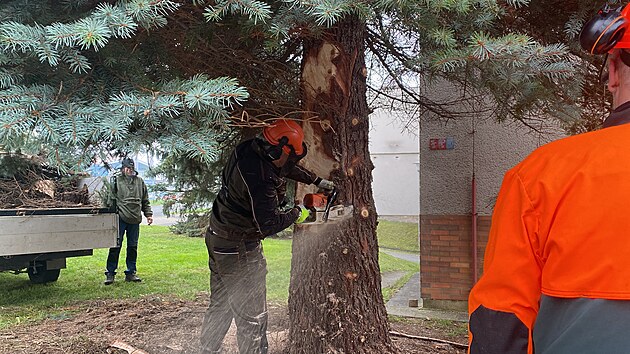 Vánoční strom pro Plzeň. Tentokrát rostl přímo v Plzni, na Doubravce. (11. listopadu 2024)
