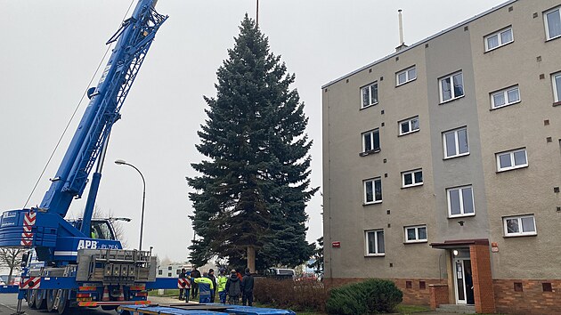 Plzeňským vánočním stromem je stříbrná varianta smrku pichlavého. V Doubravce rostl padesát let. (11. listopadu 2024)