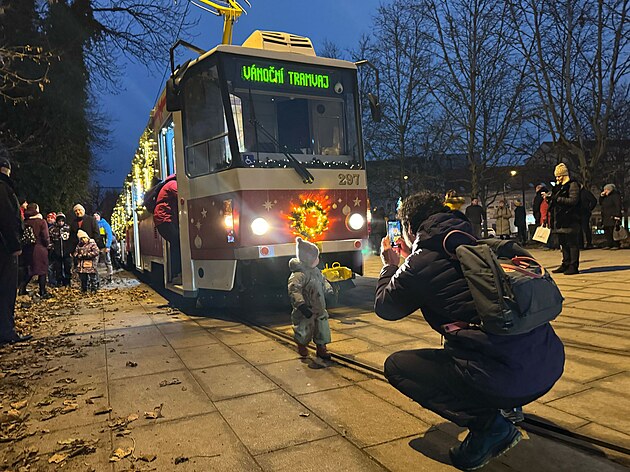 Do plzeňských ulic vyjela vánoční tramvaj. (1. prosince 2024)