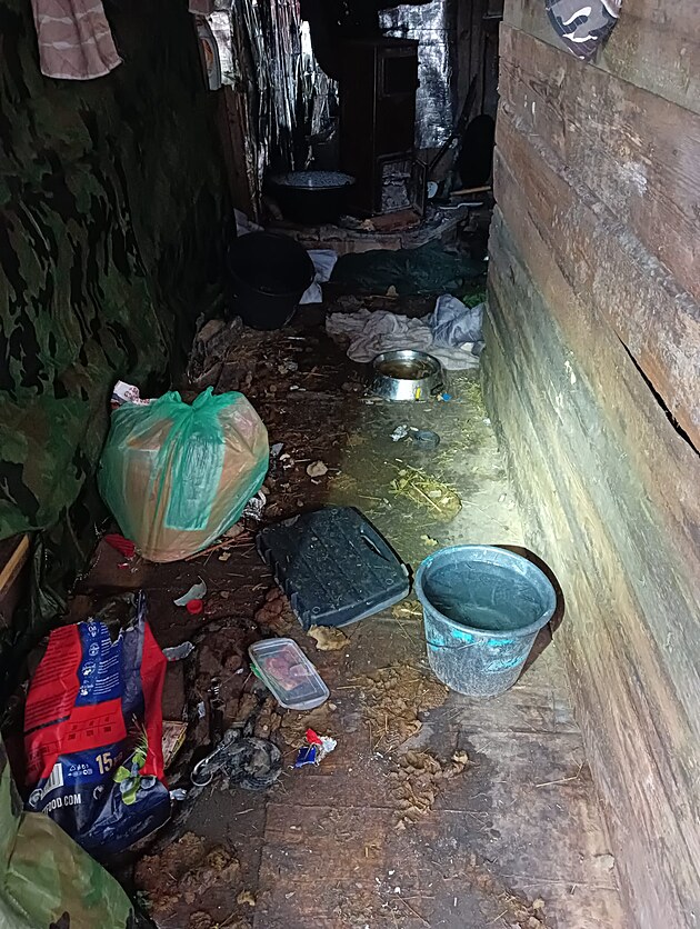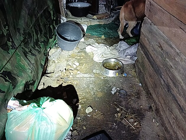 Psi živořili k nevytápěné zahradní chatě bez krmiva a vody, všude bylo plno nepořádku a exkrementů.