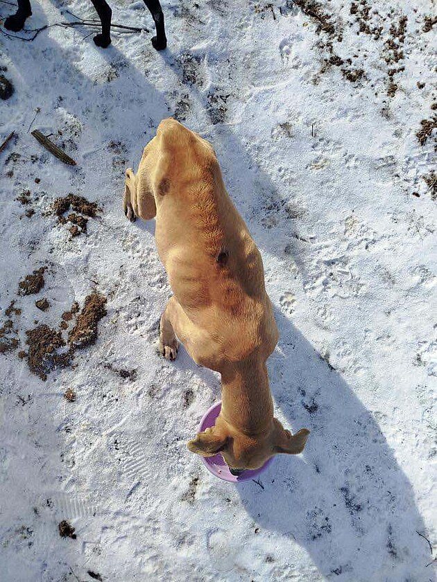 Veterináři odebrali chovateli v Přimdě dva dospělé psy a jejich tři štěňata. Další dvě štěňata zřejmě umrzla. Vyhublá fenka měla na páteři neošetřenou ránu.