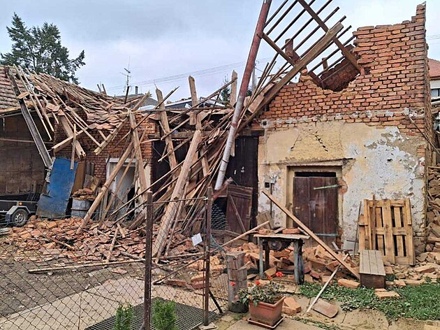 V obci Vodokrty na jižním Plzeňsku narazil autobus do stodoly. (26. října 2024)