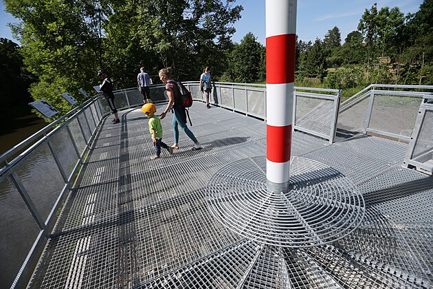 Nová vyhlídka na mostním pilíři u řeky Radbuzy v Plzni na Slovanech. (2. 6. 2023)
