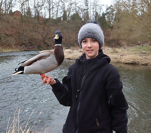 Bez své zachránkyně ani krok. Kačerovi se do volné přírody moc nechce.