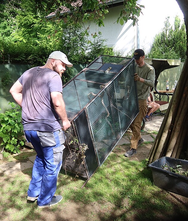 Snímek z května, kdy museli dočasně přestěhovat přípravnu krmení, dílnu a sklad materiálu.