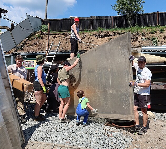 Snímek z května, kdy museli dočasně přestěhovat přípravnu krmení, dílnu a sklad materiálu.