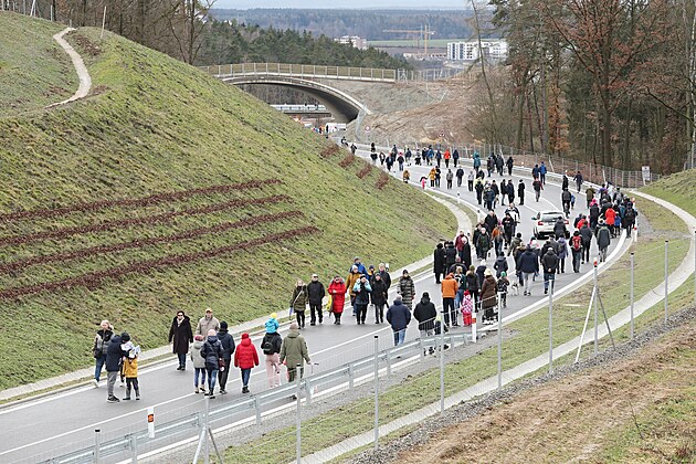 Tisíce lidí se přišly podívat na novou část západního okruhu Plzně. (19. února 2023)