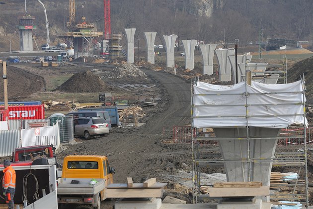 V plném proudu je stavba západního okruhu Plzně v úseku mezi Křimicemi a Košutkou. Roste tu most přes údolí řeky Mže. (23. 2. 2021)
