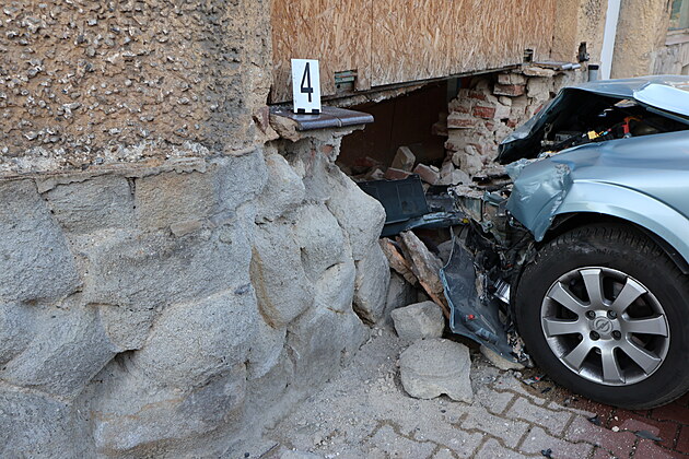 Nehoda ve Zbůchu na Plzeňsku. Řidička přehlédla, že auto před ní odbočuje, a začalo ho předjíždět. Skončila ve zdi domu. (12. ledna 2025)