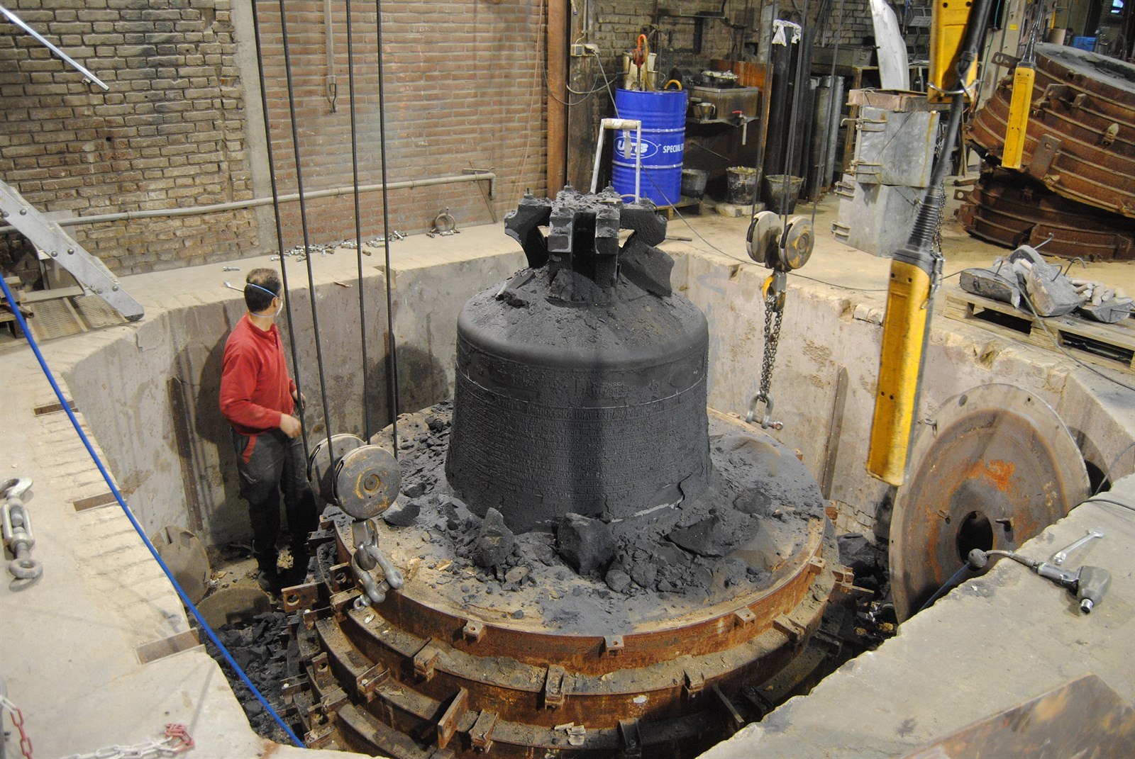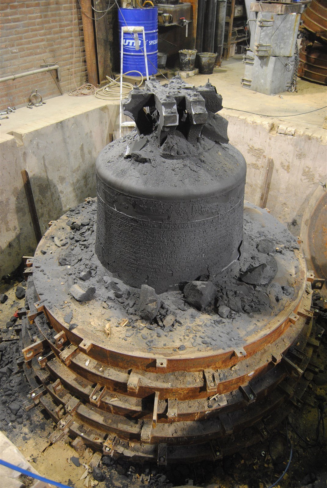 Odlévání Bartoloměje, který je největším plzeňským zvonem, Váží 5000 kilogramů.