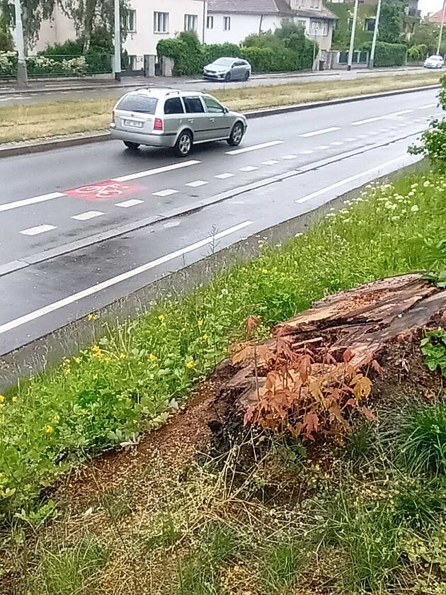 Pařez stromu, na který muž vylezl. (28. května 2025)