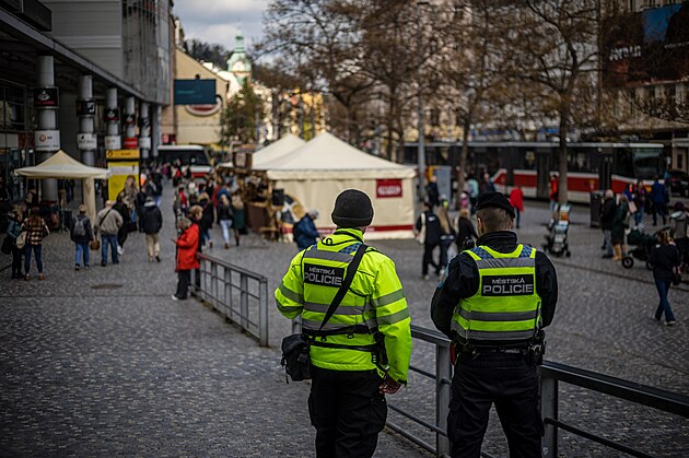Policie i strážníci posílili hlídky v lokalitě v okolí stanice metra Anděl v Praze 5. (27. dubna 2023)