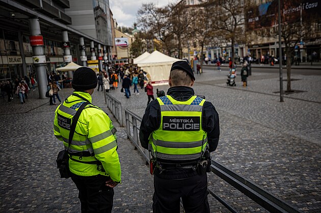 Policie i strážníci posílili hlídky v lokalitě v okolí stanice metra Anděl v Praze 5. (27. dubna 2023)