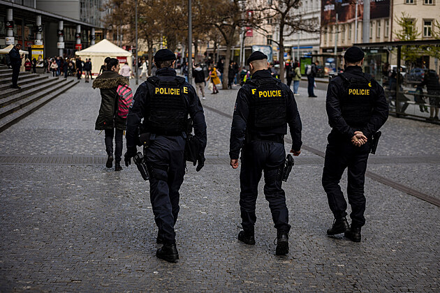 Policie i strážníci posílili hlídky v lokalitě v okolí stanice metra Anděl v Praze 5. (27. dubna 2023)